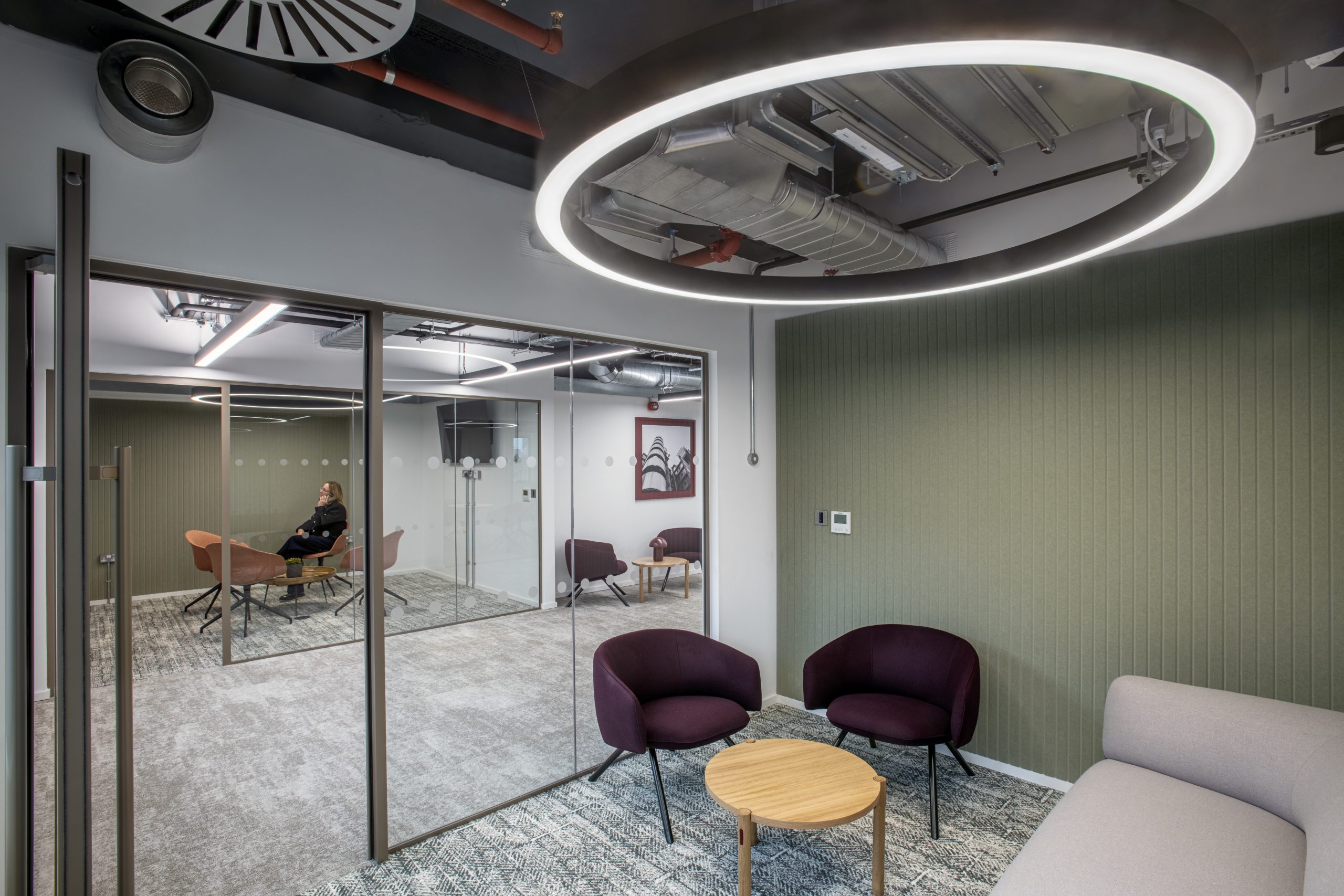 Install of new glazed partition with a bronze trim to construct meeting rooms and 2 phone booths